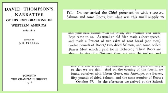 References to camas as ‘Roots’ in David Thompson’s Narrative of his Explorations in Western North America 1784-1812: